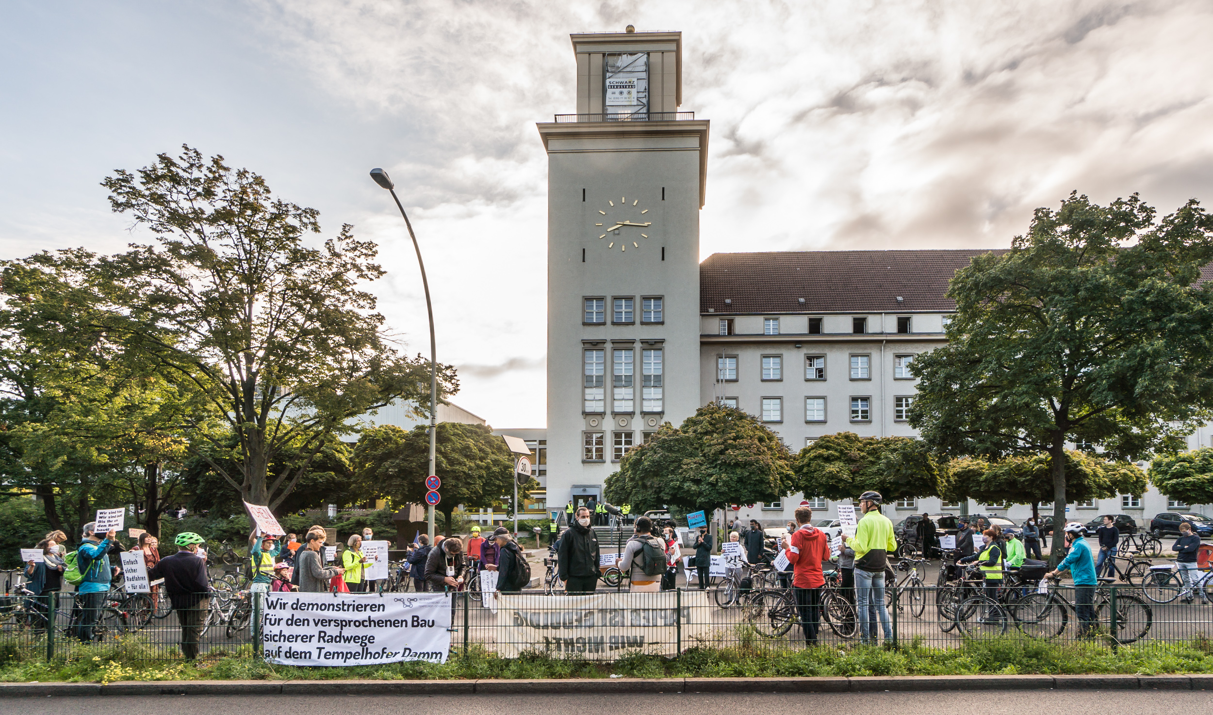 Demo zur Umsetzung des BVV-Beschlusses für Fahrdastreifen auf dem Tempelhofer Damm, 1.9.2020
